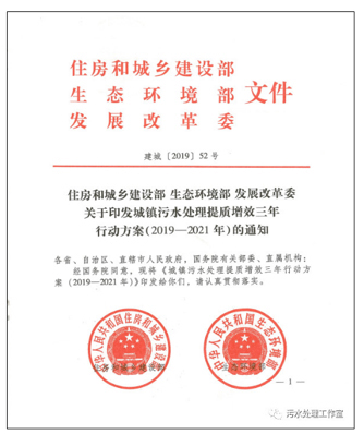 2019年4月29日住房和城乡建设部、生态环境部、国家发展改革委联合印发了《城镇污水处理提质增效三年行动方案(2019—2021年)》(以下简称《三年行动方案》),明确提出加快补齐城镇污水收集和处理设施短板,尽快实现污水管网全覆盖、全收集、全处理的总体要求,提出地级及以上城市建成区基本消除“生活污水直排口”“生活污水收集处理设施空白区”“黑臭水体”,最终实现“生活污水集中收集效能”显著提升的工作目标,并从“推进生活污水收集处理设施改造和建设”“健全排水管网长效机制”“完善激励支持政策”“强化责任落实”4个方面提出了13项工作任务,为我国城镇污水处理行业提质增效工作指明了方向。