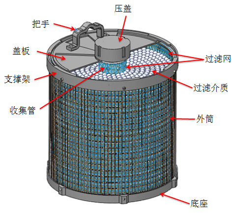 圆筒过滤器是一种利用过滤介质的物理和化学作用去除雨水中污染物的雨水处理设备,过滤介质根据雨水中的污染物情况进行定制设计,能针对性地去除雨水中的颗粒物、有机物、重金属、氮和磷等污染物。圆筒过滤器结构简单,安装方便,维护容易,广泛用于城市各种雨水处理,处理后的雨水可渗透到地下或排放到自然水体或回收利用。