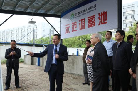 武汉圣禹排水系统有限公司董事长李习洪会见王钦敏一行,先后来到公司的调蓄池、低影响开发产品展示厅、系统控制室参观。公司董事长简单介绍公司发展情况及背景、并对调蓄池整个运行系统进行演练并讲解。