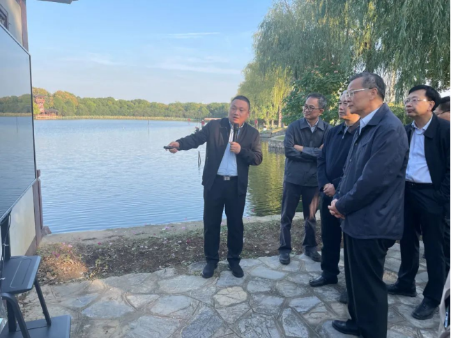 11月8日下午,广东省人大常委会党组成员、省总工会主席吕业升一行来汉调研,专程赴汤湖实地调研汤湖综合整治情况。湖北省人大常委会代表、武汉市人大常委代表、武汉经济技术开发区领导陪同调研,武汉圣禹智慧生态环保股份有限公司项目开发中心总监张玉玺现场介绍汤湖综合治理成果。
