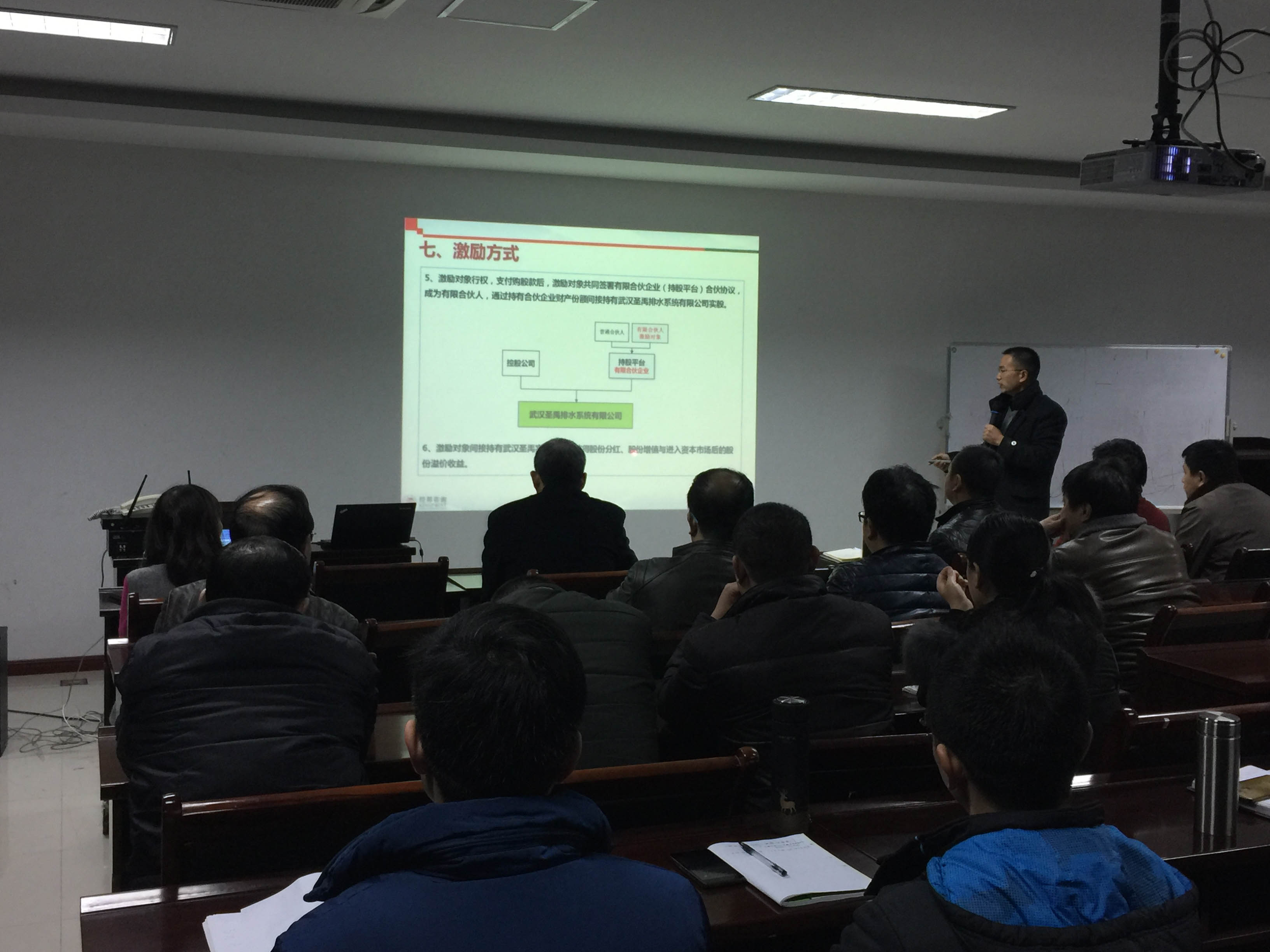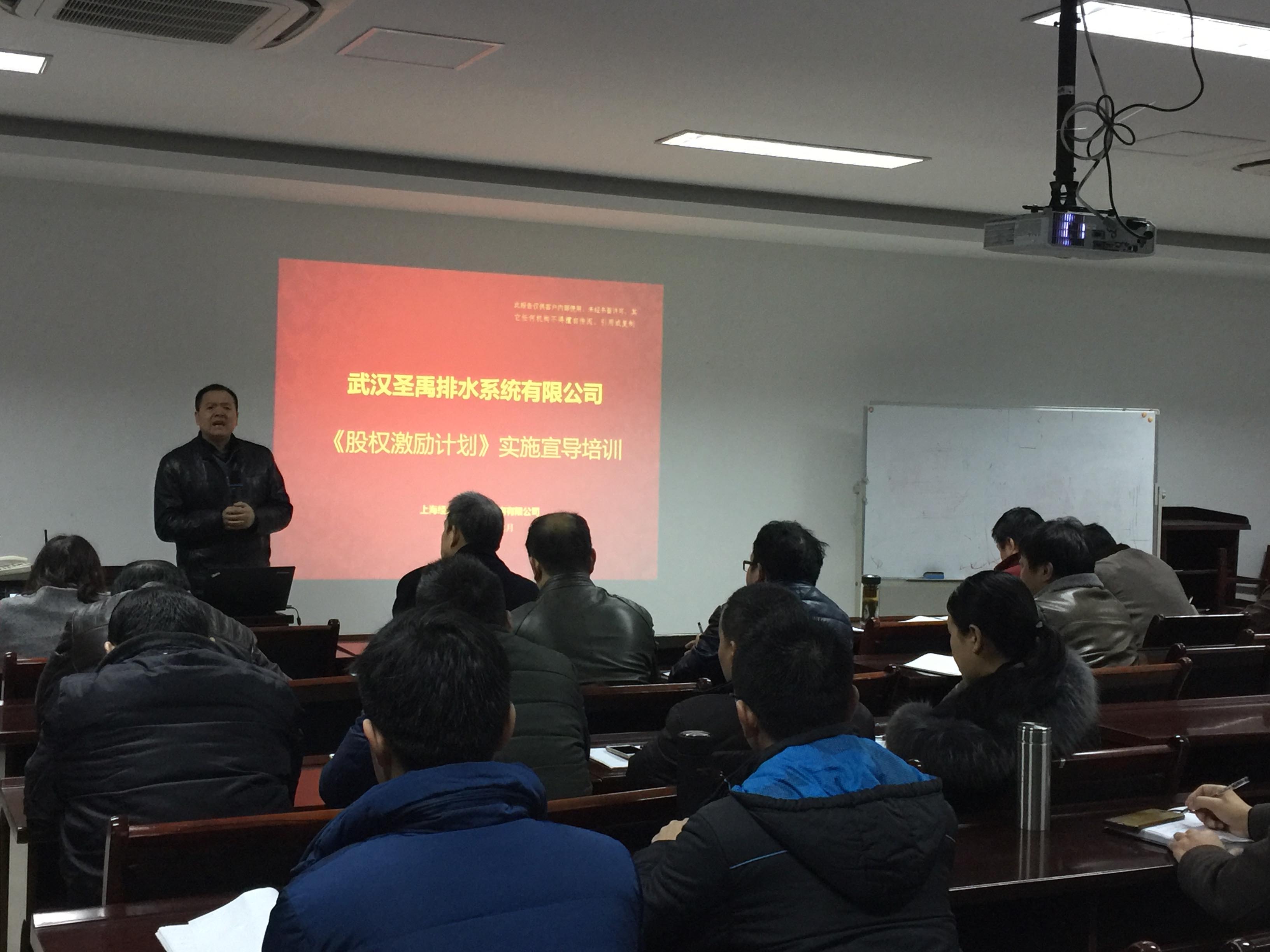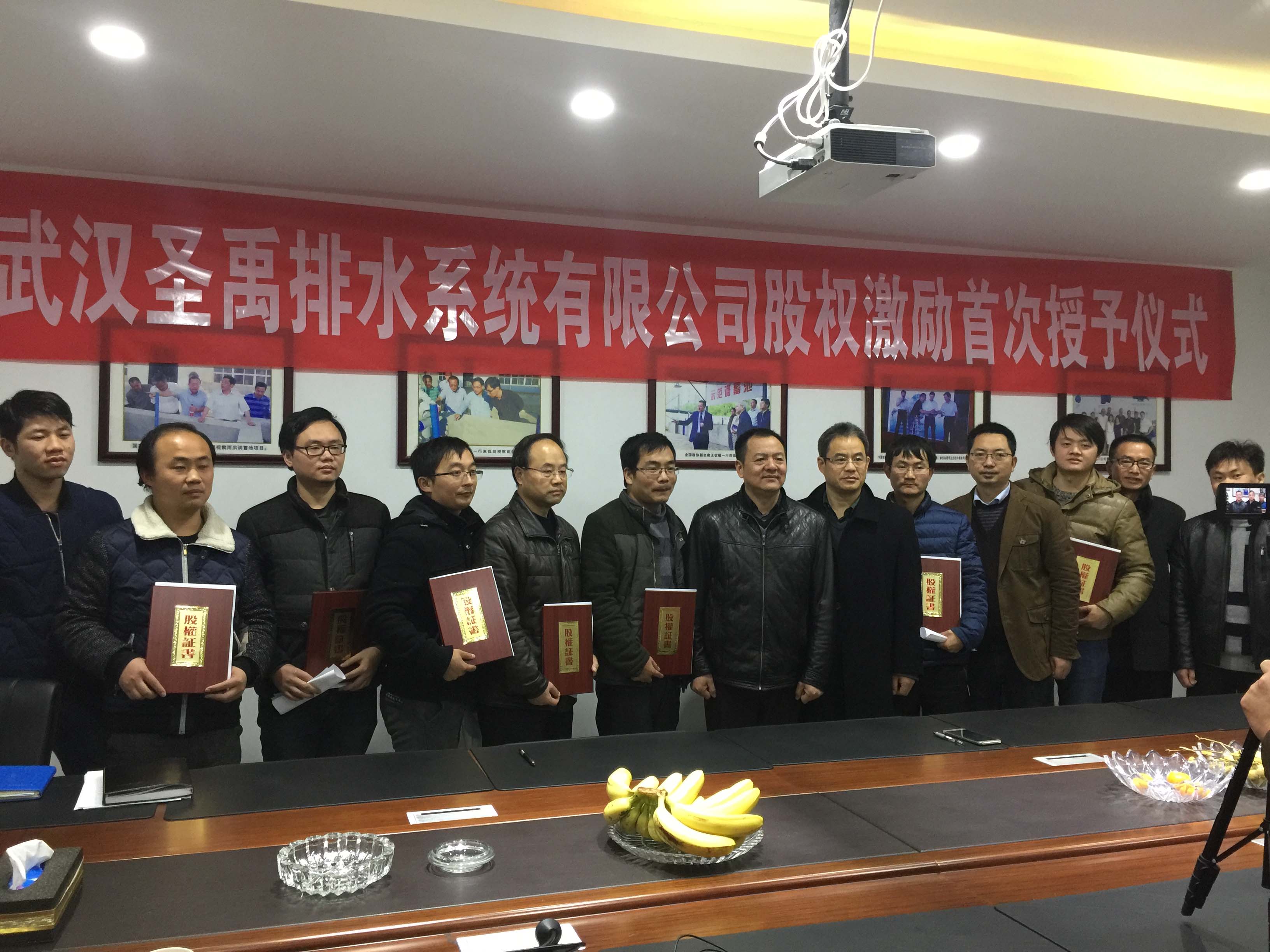 为了充分调动圣禹公司全体员工的积极性,有效地将股东利益、公司利益和员工利益结合在一起,建立公司长期激励机制,使各方共同关注公司的长远发展,根据《公司法》以及其他法律、法规、规范性文件和《公司章程》规定,聘请上海经邦企业管理咨询有限公司制订了《武汉圣禹排水系统有限公司股权激励计划》,股权激励计划分5期,股权激励首次授予仪式于2016年12月20日在公司会议室举行。
