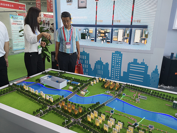 圣禹排水工作人员现场利用南京水环境治理项目模拟沙盘向大家展现了“分流井+调蓄池"、"智能分流井"及"SCADA智慧运维系统"等技术在水环境治理项目中的应用。