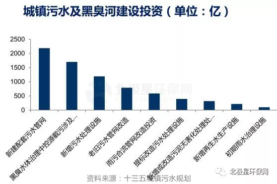 未来城镇污水处理建设总投资近6000亿,主要包括:新建、改造配套污水管网投资分别为2188亿、788亿;新增、改造污水处理投资分别为1192亿、395亿,新增或改造污泥处置设施投资316亿,新增再生水设施投资215亿。“十三五”期间黑臭河建设投资约1700亿。